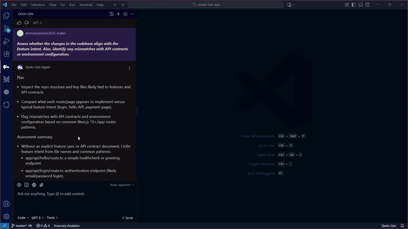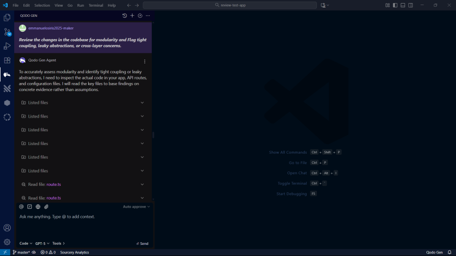 On speed, though, it lags behind Qodo. It took a little over a minute to generate its analysis. Not a deal breaker, but you feel the difference.