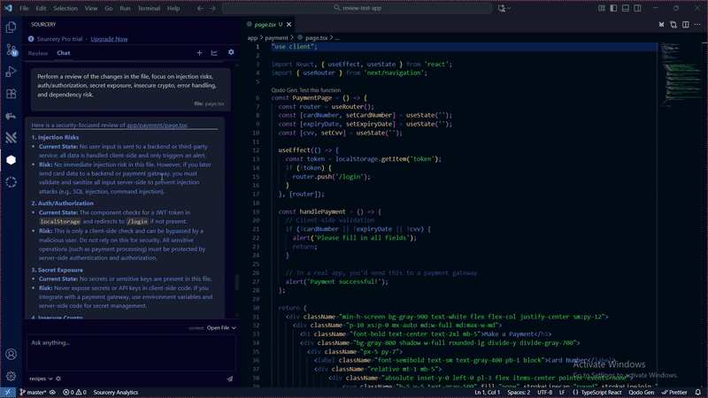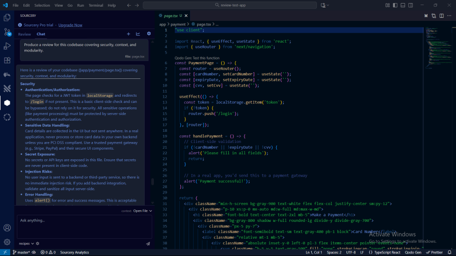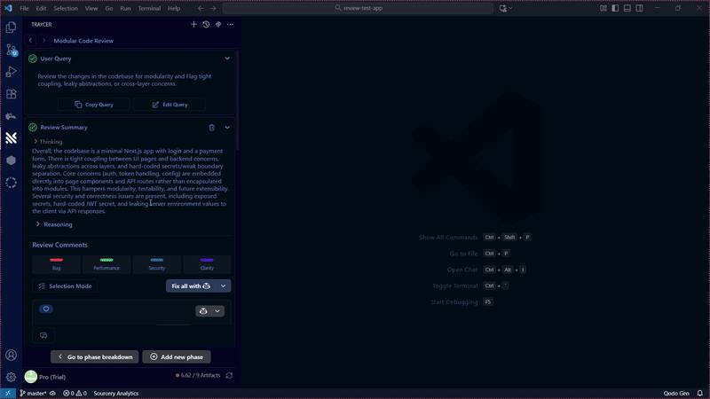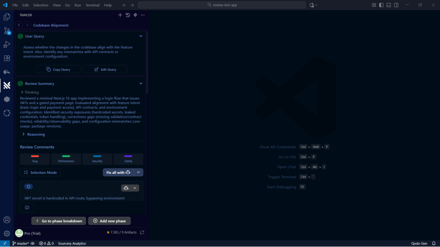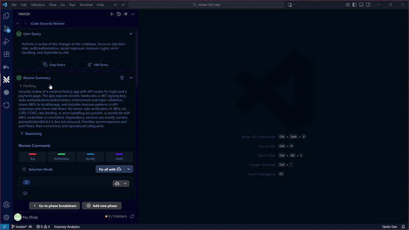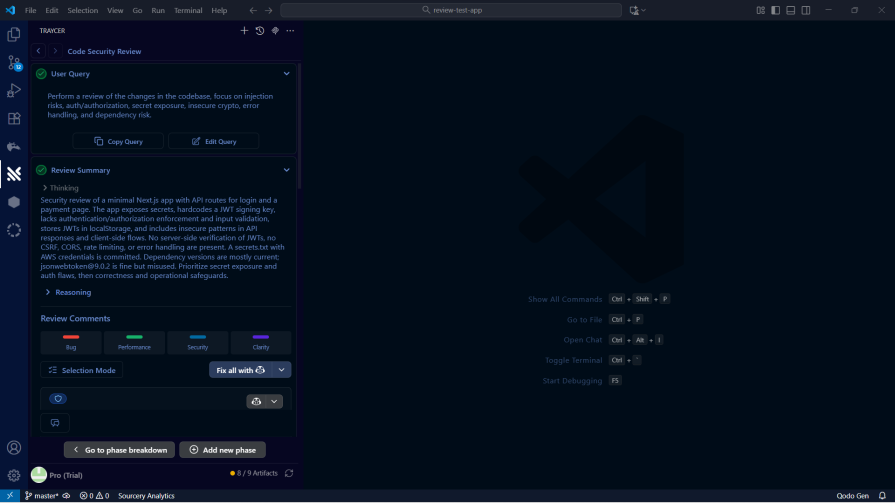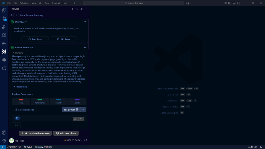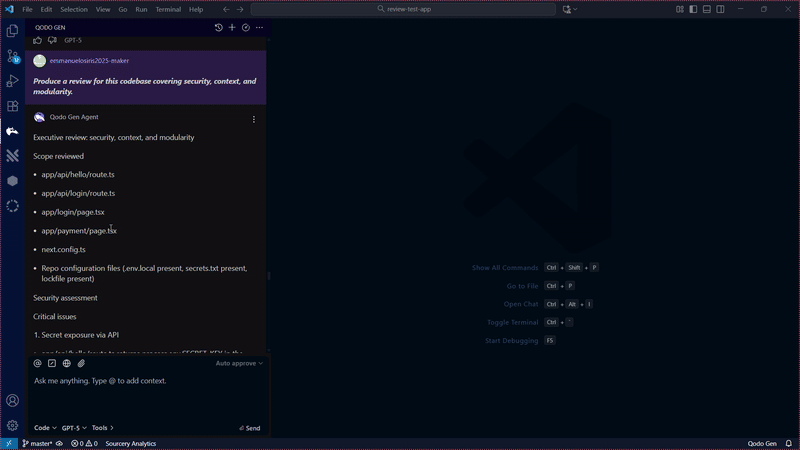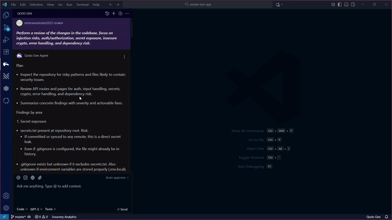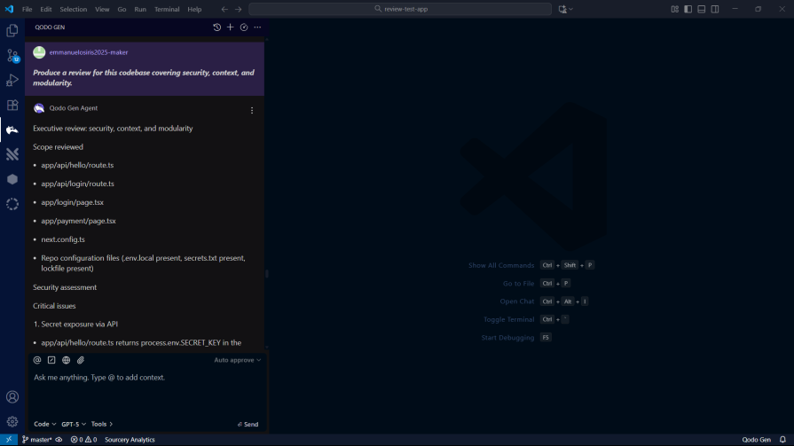 I understand this is a fairly small and less complex codebase, but it took Qodo less than a minute to scan and make a security review of the codebase. I consider this very impressive: