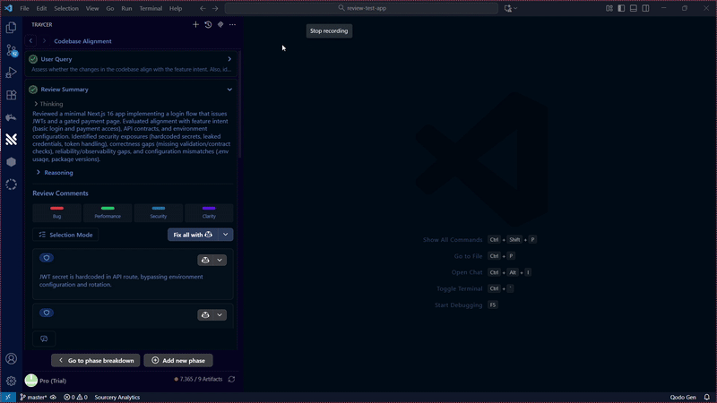 Traycer lands in a solid second place. It’s not as quick or as thorough as Qodo, but it still delivers useful insights and is simple to work with.