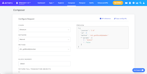 It’s also worth noting that you have access to Alchemy’s composer, a platform that allows you to configure and send blockchain requests directly using web forms.