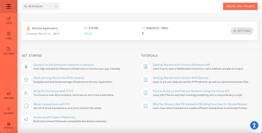 You also have access to the Infura Explorer, which allows you to manage all of your IPFS projects and analyze uploaded data as well as real-time data.
