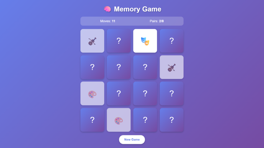 | Prompt | “Create a memory game” | “Create a simple memory game” | “Create a simple HTML memory game” |