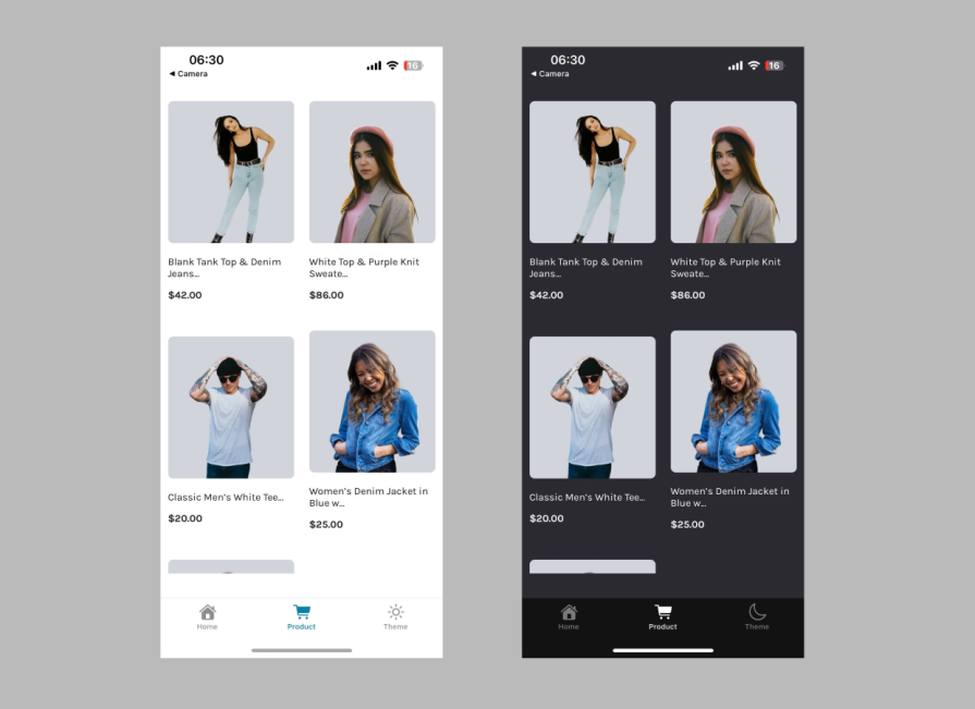 The product data lives in a separate file available at data/products.ts. This structure keeps the screen clean while making the layout easy to scale, no matter the device’s width.