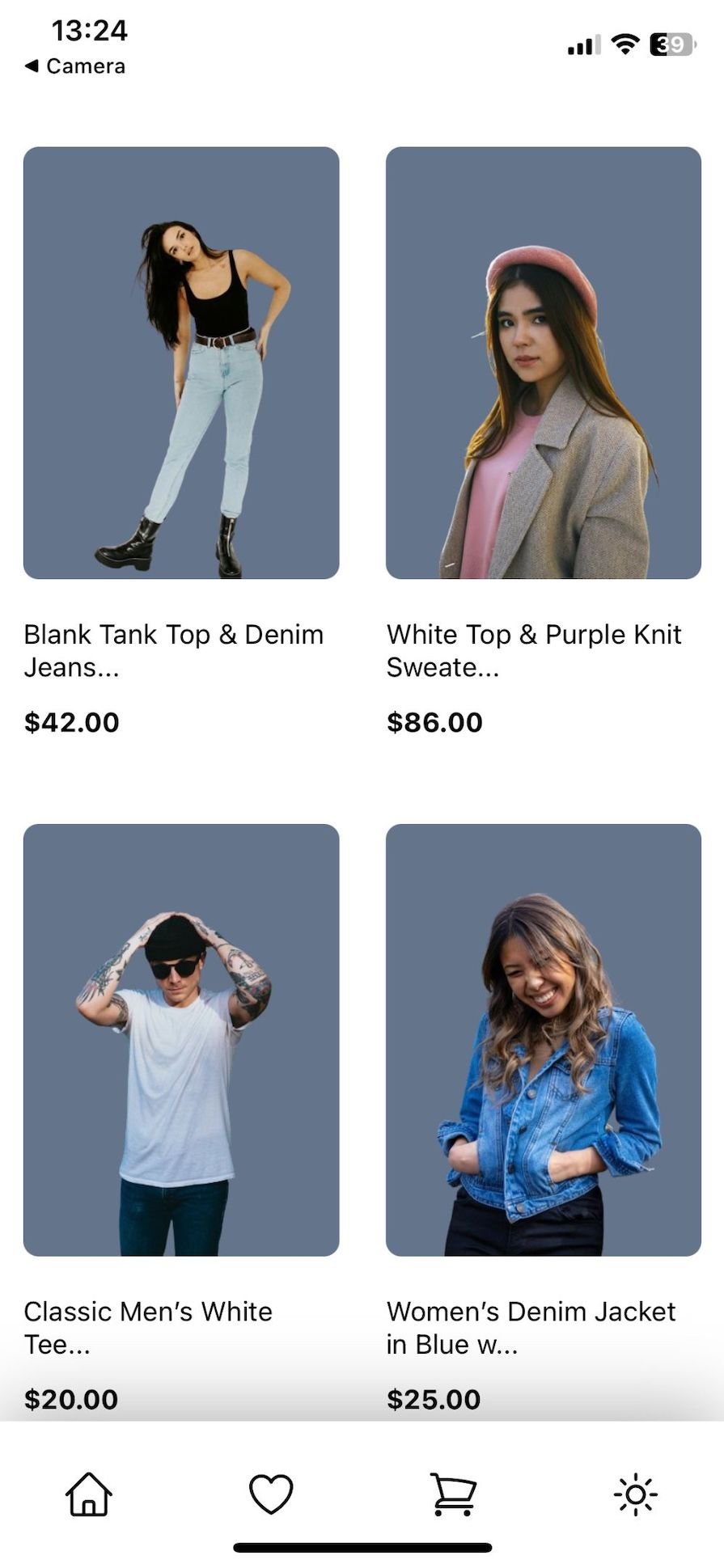 data: The actual data that will be iterated through and renderedrenderItem: A function that should return a JSX element representing the view of each iteration. The function takes each item from data as a parameterkeyExtractor: Used to specify a unique key for each item in the list, helping React to efficiently identify and update list items. It also takes each item in data as a propImport the product data from utils/product.js and render the Flatlist like so: