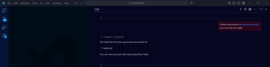 It created the tasks.md file that contains the tasks the AI agent will go through to complete our project.