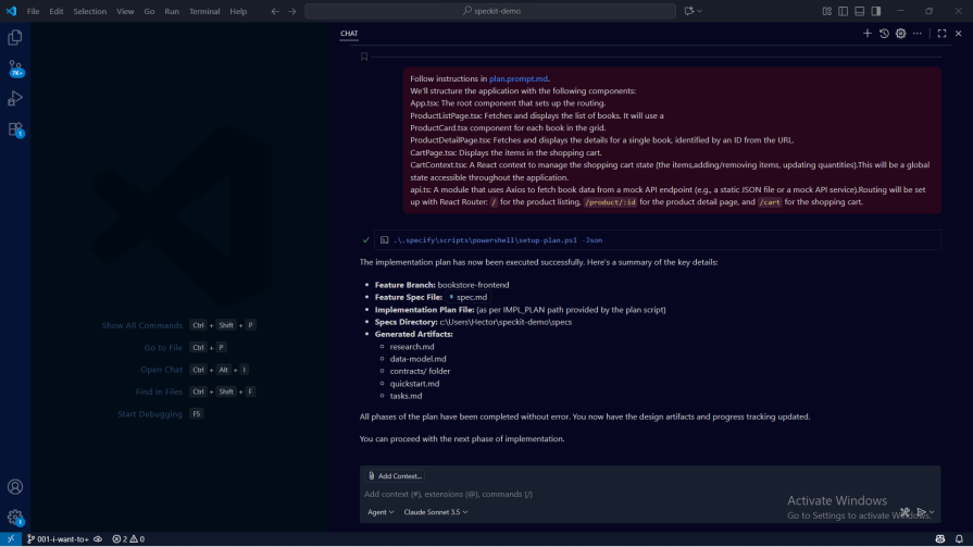 After answering these questions, Spec Kit confirmed that everything looked good and suggested moving on to the /plan command — which we’ll run in the next section.