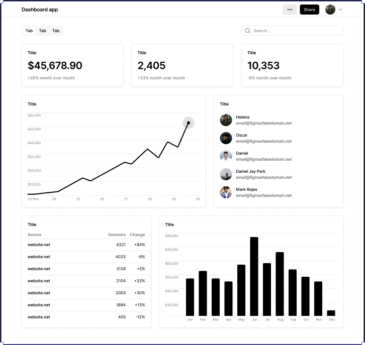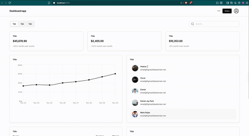 We will supply Kombai with this Figma design so it will replicate it into React, Shadcn, and Tailwind v4 code: