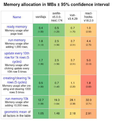 You can compare performance in a more rigorous way by consulting Stefan Krause’s js-framework-benchmark project. Here are results based on the latest snapshot: