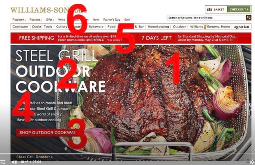 Then, the attention goes to the CTA; if you are a system 1 (fast) thinker, that’s your next step. But if you need more convincing, there’s an extra explanation (4) and a promo banner (5) to seal the deal.