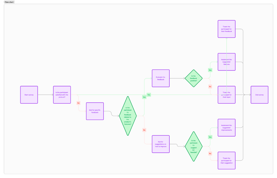 Creating a “complex” survey without first visualising the questions with a tree diagram can be a recipe for disaster. If you’d like to save yourself time and headaches, I’d suggest using a tool like FigJam, Canva, Whimsical, or Miro for this.