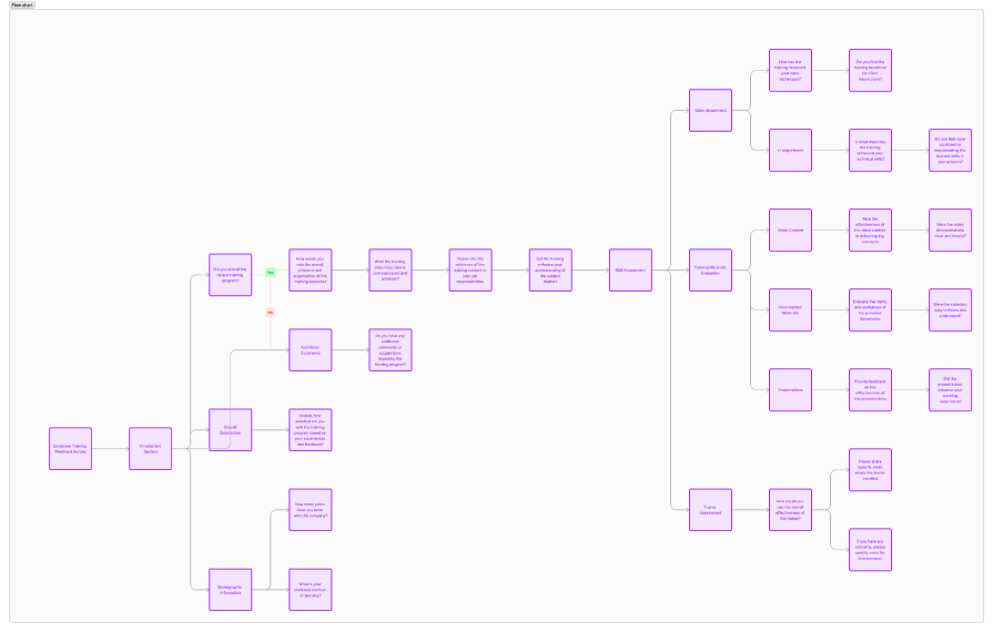 As an illustration, take a look below at this tree diagram for the “Employee Training Feedback Survey,” that I’ve quite effortlessly generated within seconds using FigJam’s AI tool 🤯: