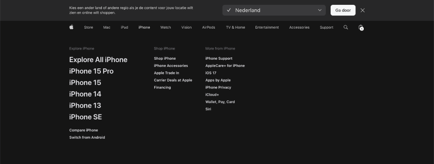If you use familiar and relevant category names, users will quickly find what they seek. And how you achieve this consistent hierarchy is by highlighting the most important elements. An example of effective navigation is Apple’s website. Even though they have a lot of text in their menu, it has a strong hierarchy and structure, with products highlighted in bold font of a larger size: