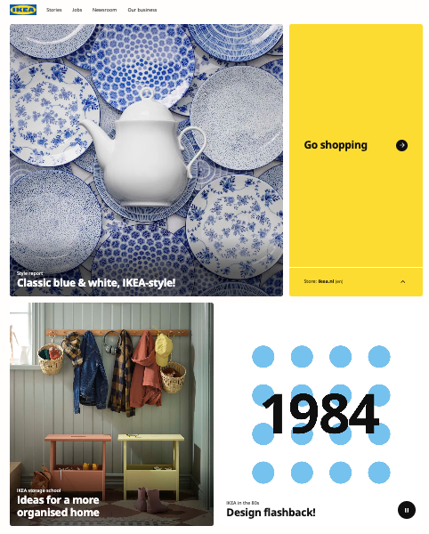 Make sure your content is balanced. Use various elements: images, videos, text, and infographics. Too much content of the same type overwhelms users and leads to cognitive overload. A balanced mix of visuals, text, and icons will help users to understand your product better. Look at the balance on the Ikea landing page: