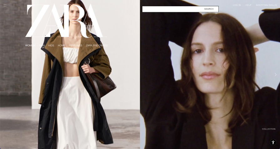 Is it easy for you to read the text and see the navigation bar on the Zara page? Text is not a priority for Zara; strong visuals sell here. But imagine if you made something like this on a website where information is crucial! What do you feel as a user?: