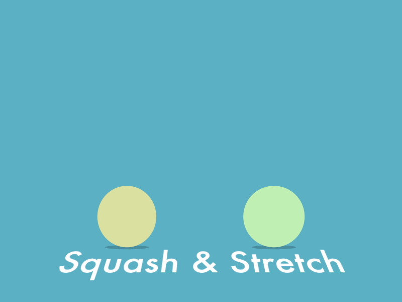 This technique adds realism to an animation, giving an object weight and flexibility when it encounters an opposing force. A classic example of squash and stretch is a ball that is dropped on the ground. Notice that the ball does not change volume when squashed or stretched. It simply becomes longer or wider to give it an elastic feeling: