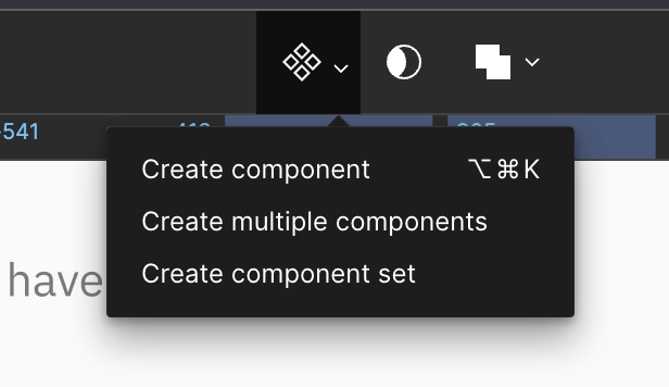 To do that, select the button notice on the navbar at the center, and you will see a dropdown components icon. Click that and like “Create component set”: