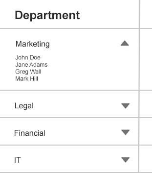 The search field is a great component to have because users can refine their view and select exactly what they want, so here again, you need to have a design done for a full table scenario and a single row as a result of the search. On some occasions, you can have more than one search field, which will refine the search and show curated results.
