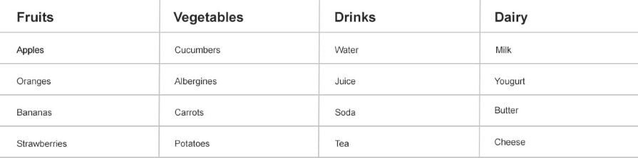 With these answers, you will be able to decide which fields are mandatory, columns and row sizes, the correct headers, how to sort the table, and any customizations that users might require.