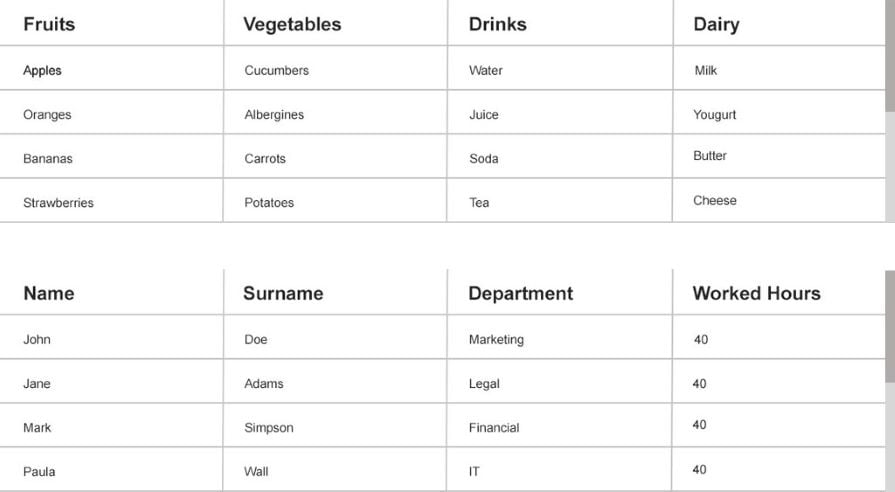 Another scenario you might face is a page with multiple tables, so how can you display all of them at once? Setting a fixed height for each one of them and applying a vertical scrollbar to it: