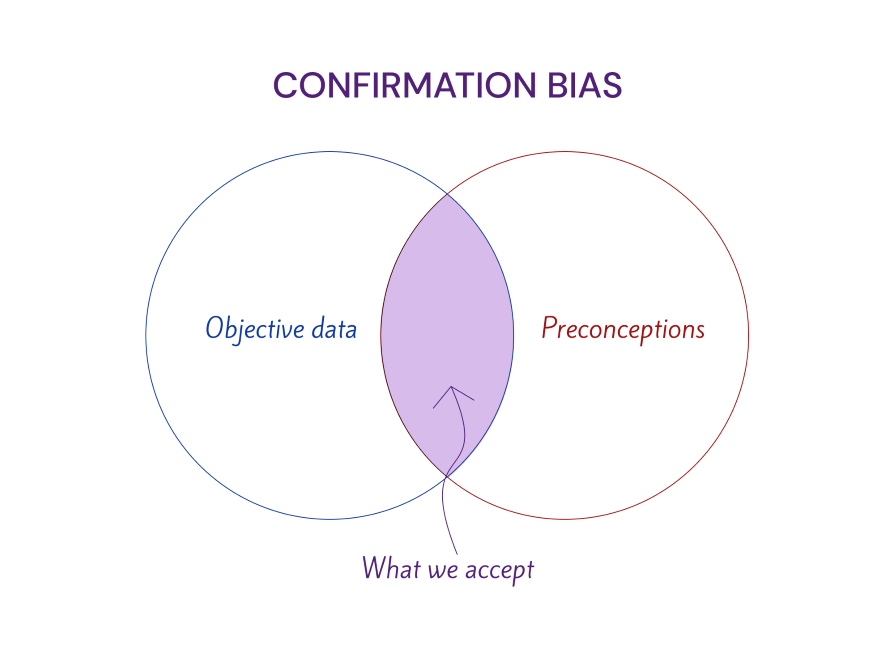In UX design, confirmation bias is usually the culprit when you design products that align with your values and preferences rather than the users’ needs.