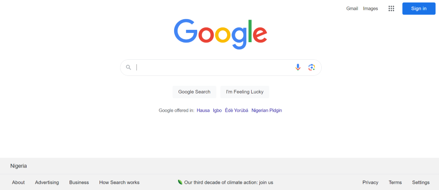 Google’s search engine does this exceptionally well. First, there’s no room for confusion as the main focus is the search bar. But besides the homepage being clean and simple, it also offers personalization options like various language settings to cater to users’ needs.