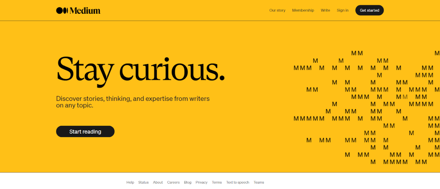 When designing a homepage, less is more. Putting too many elements on your homepage can lead to visual clutter and diminish their impact. If you want a feature to stand out, place it in a prominent location rather than repeating it. However, there are some situations where repeating content can be helpful. In the example from Medium, the sign-up link appears twice — in the main body and the navigation menu but with different wording — “Start reading” and “Get started.” This approach ensures that the users can notice the sign-up option without it feeling redundant.