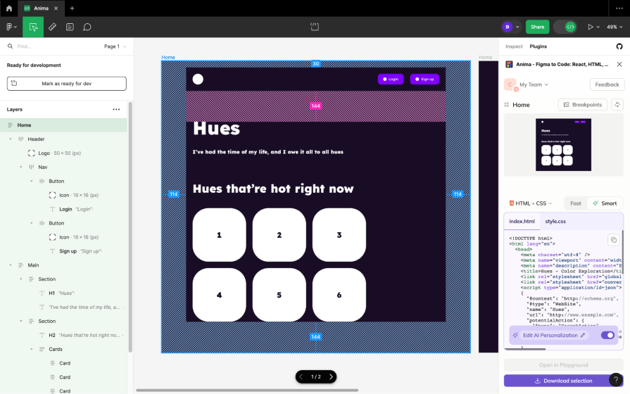 Using Figma Anima for design-to-code handoff