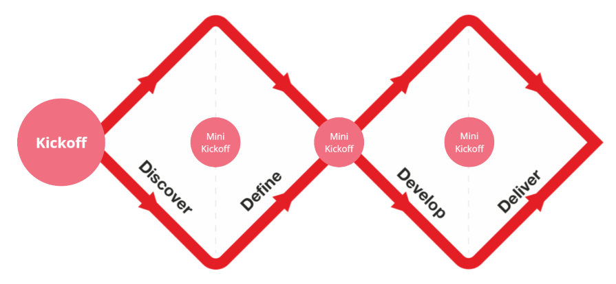 Ideally, it should happen at the beginning of the Double Diamond process; however, I sometimes also have “mini kickoffs” when moving through different phases of the design process:
