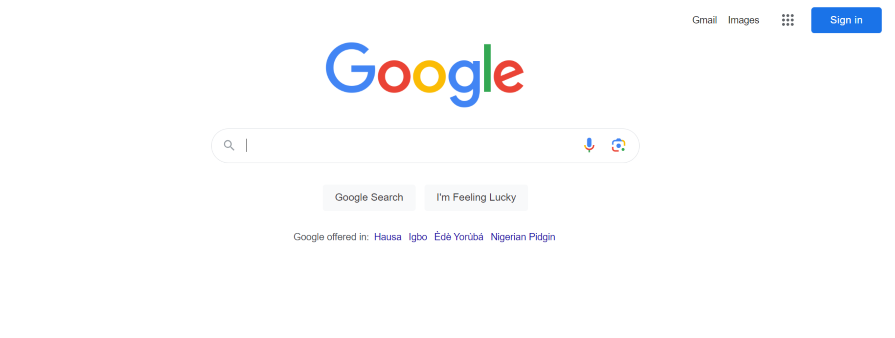 Use minimalistic design to ensure users can perform their primary tasks without distractions. As you can see in the example below, Google’s search engine homepage only has a search bar and a few buttons, leaving almost no room for confusion: