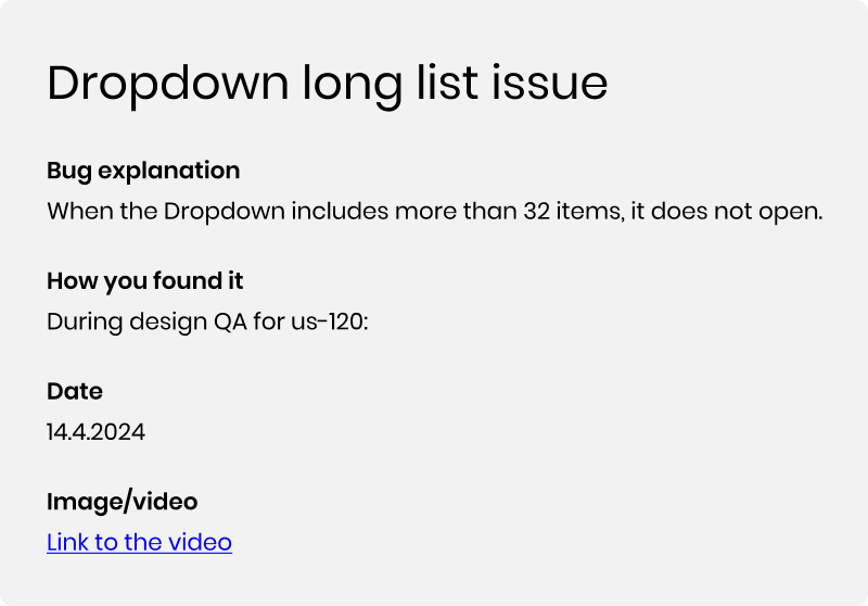 To illustrate, let’s take a simple case of an error in the design system — the dropdown component doesn’t open if the list inside is too long.
