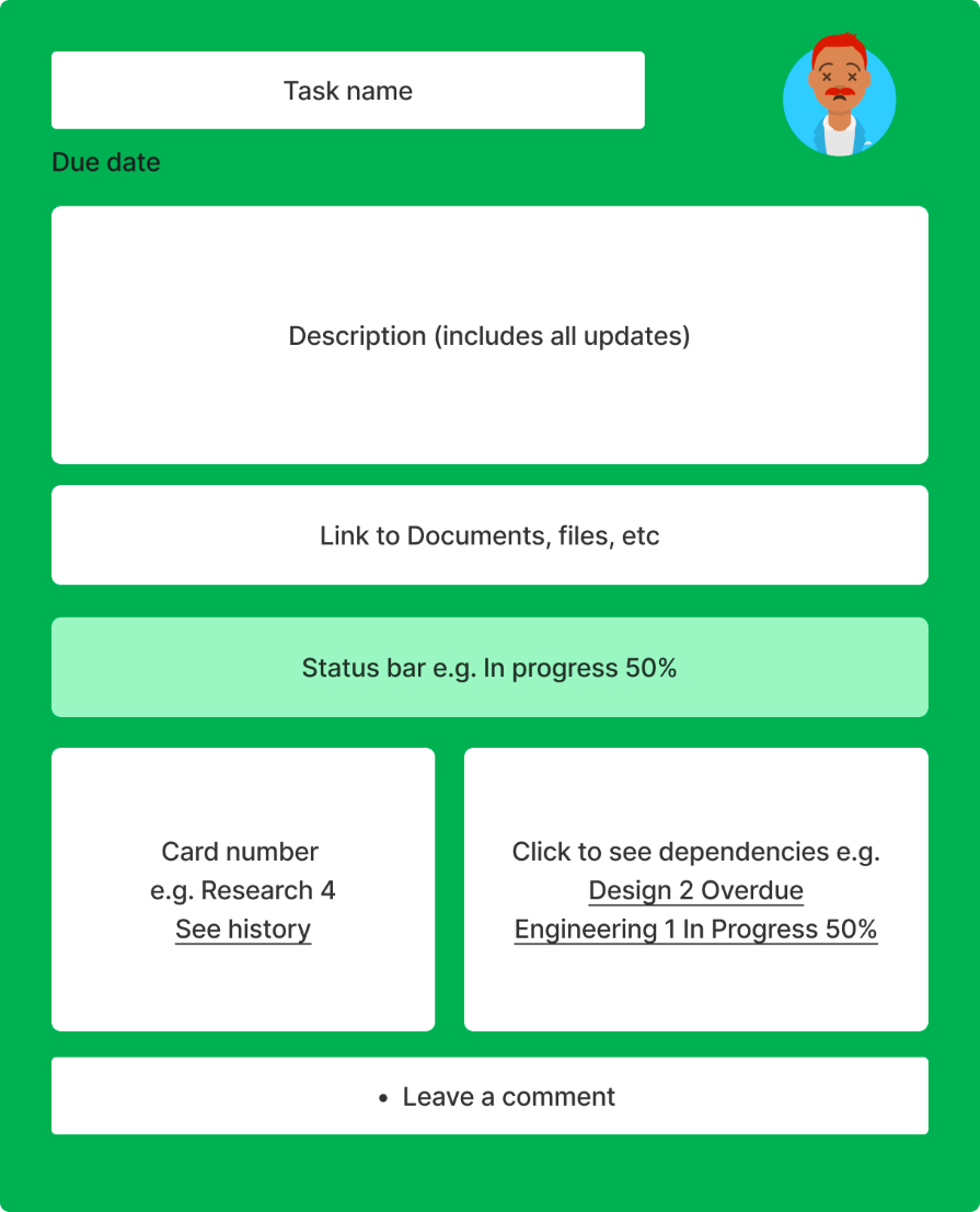 Gantt charts can be more effective by providing detailed information within each task card. It would be important to include specifics such as the responsible team, the individual driving the task, and any other relevant details. This level of granularity ensures that team members have a comprehensive understanding of each task, fostering accountability and clarity.