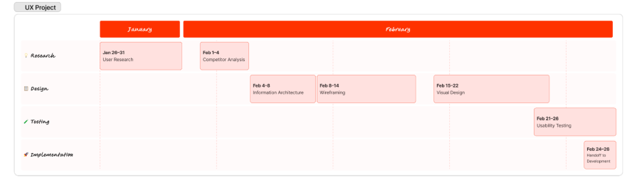 Here is the link to the FigJam template for this Gantt Chart for UX Projects which aims to incorporate the elements and features discussed above: