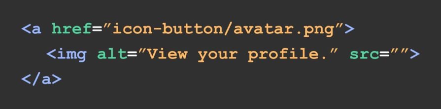 As an example, imagine you’re writing alt text for an avatar icon that links to the user’s profile page. Writing “View your profile.” is more helpful and descriptive than “Avatar icon.”:
