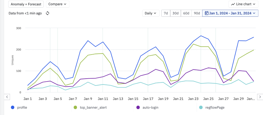 Although for advanced analytical topics, such as building churn prediction models and pattern recognition, you might need the help of a data analyst or a product manager, there are some things you can easily check yourself as a UX designer. For example: