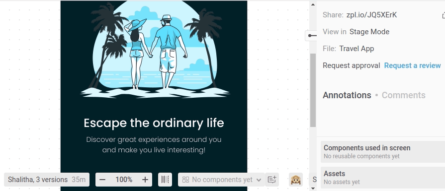Credits: Traveling Mobile App free design file released under Creative Commons 4.0 (CC 4.0) license used in Figma and Zeplin previews. Minor modifications were made to the original design file to demonstrate Figma to Zeplin import features.